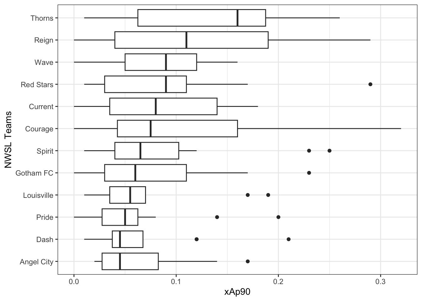 For Questions 13-19, consider the following R packages and the data.frame, nwsl_player_stats, containing individual player statistics for the National Women’s Soccer League (NWSL) in the 2022 season: