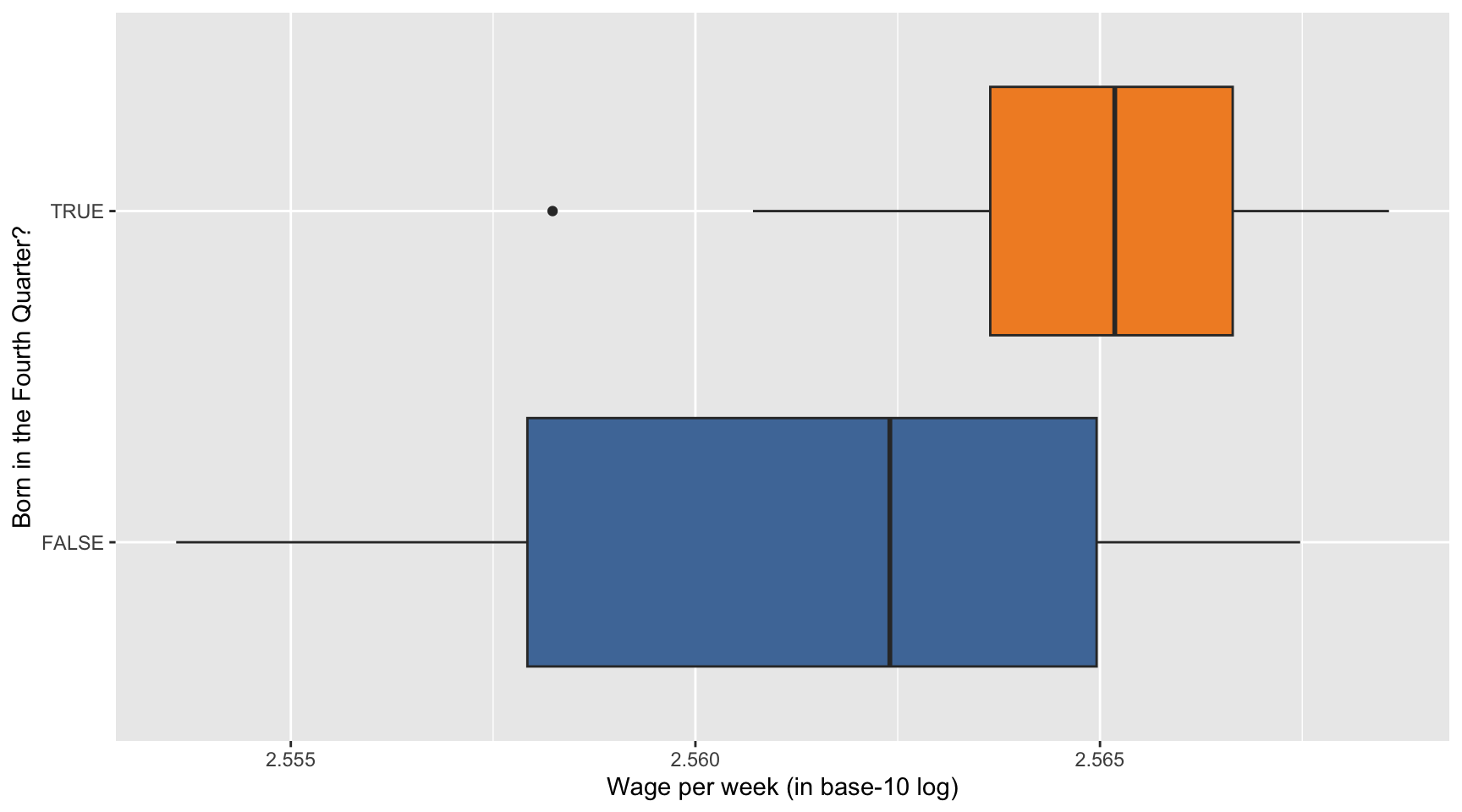 Here we describe how the relationship between age and income varies by health_ins using the health_cust data.frame. Note that the new geometric object geom_hex() divides the plane into regular hexagons, counts the number of observations in each hexagon, and then maps the number of observations to the hexagon fill.