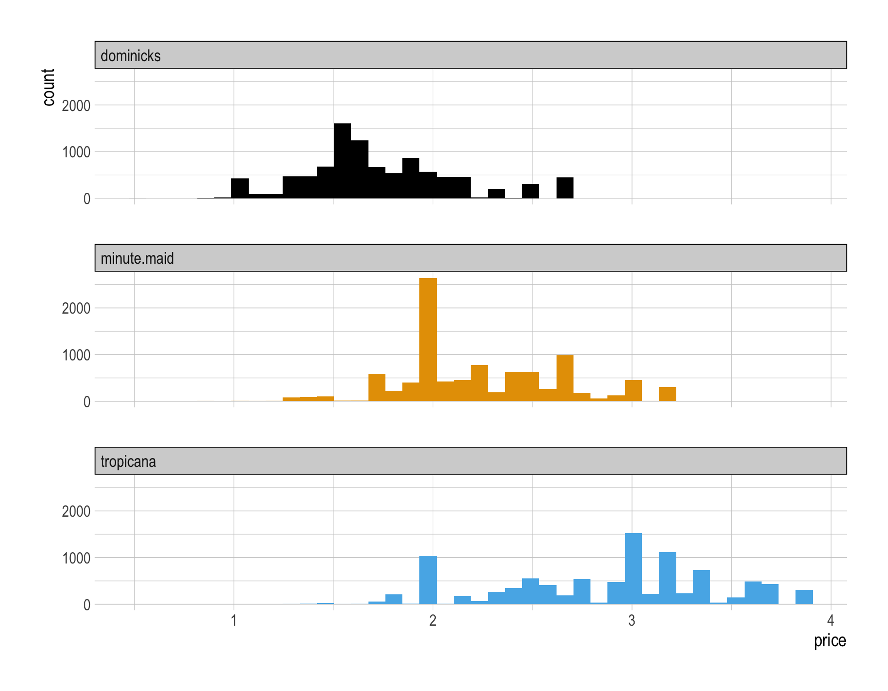 Overall, Dominick’s is the budget option, Tropicana is the luxury option, and Minute Maid lives between.