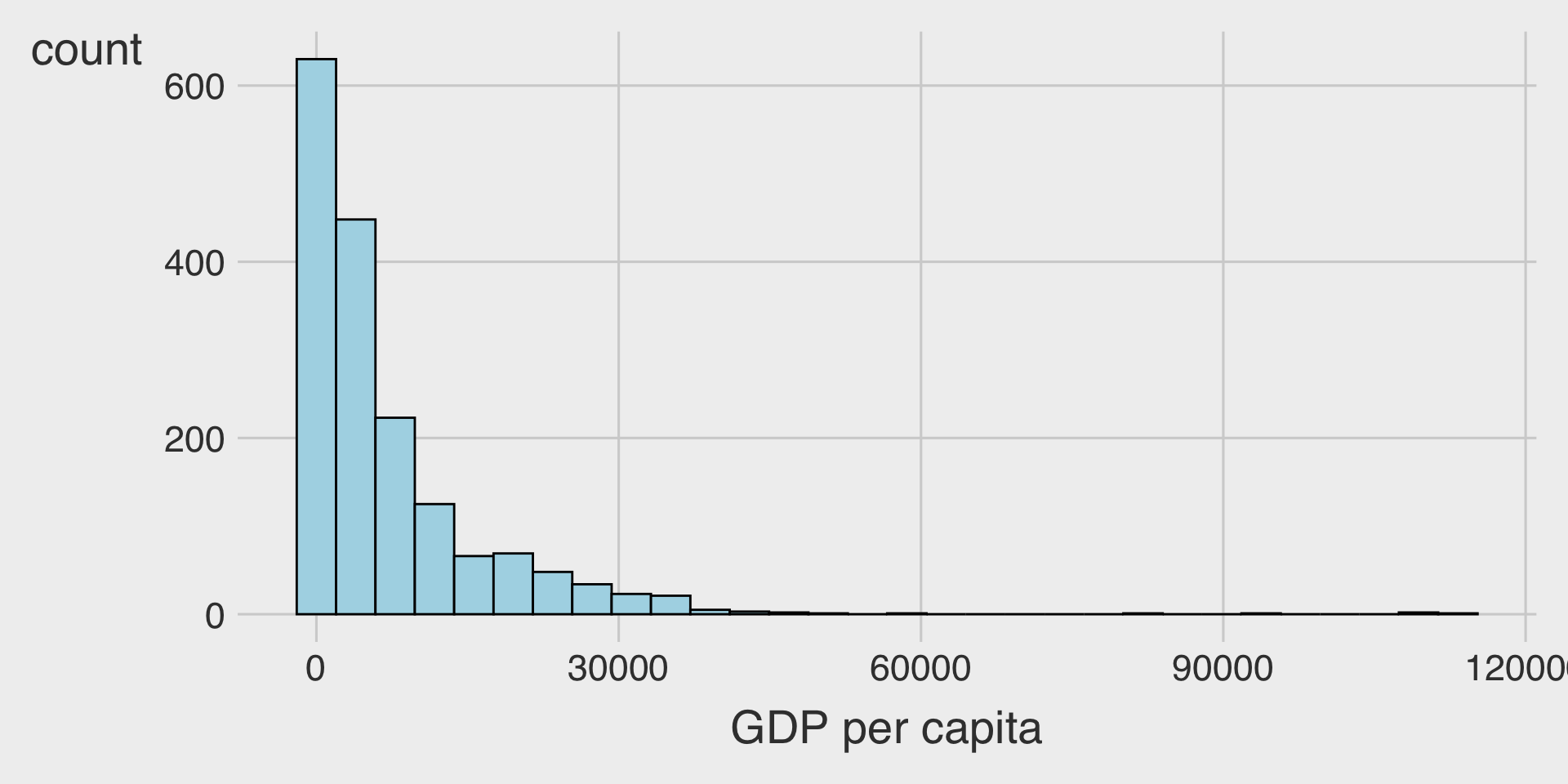 ggplot() - HistogramsHistograms are used to visualize the distribution of a numeric variable.