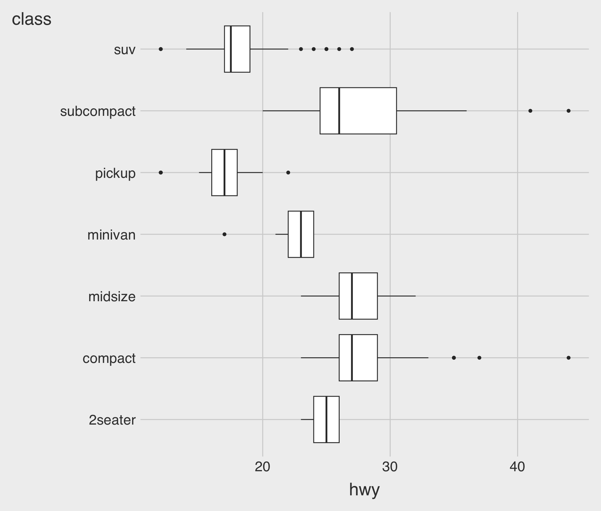 geom_boxplot()geom_boxplot() creates a boxplot;