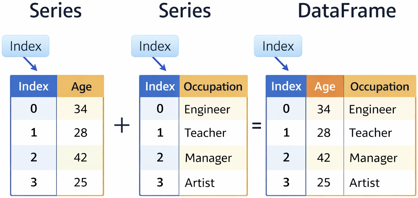 Series: A one-dimensional object containing a sequence of values (like a list).