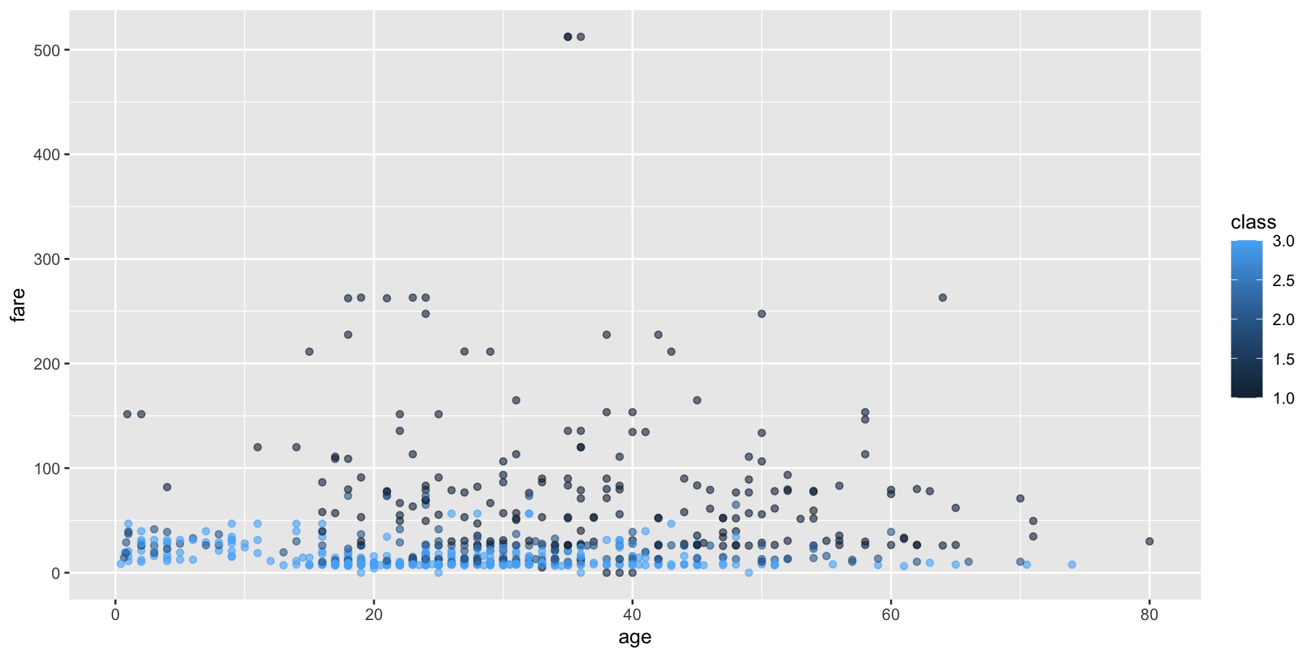 aes(x = age, y = fare,