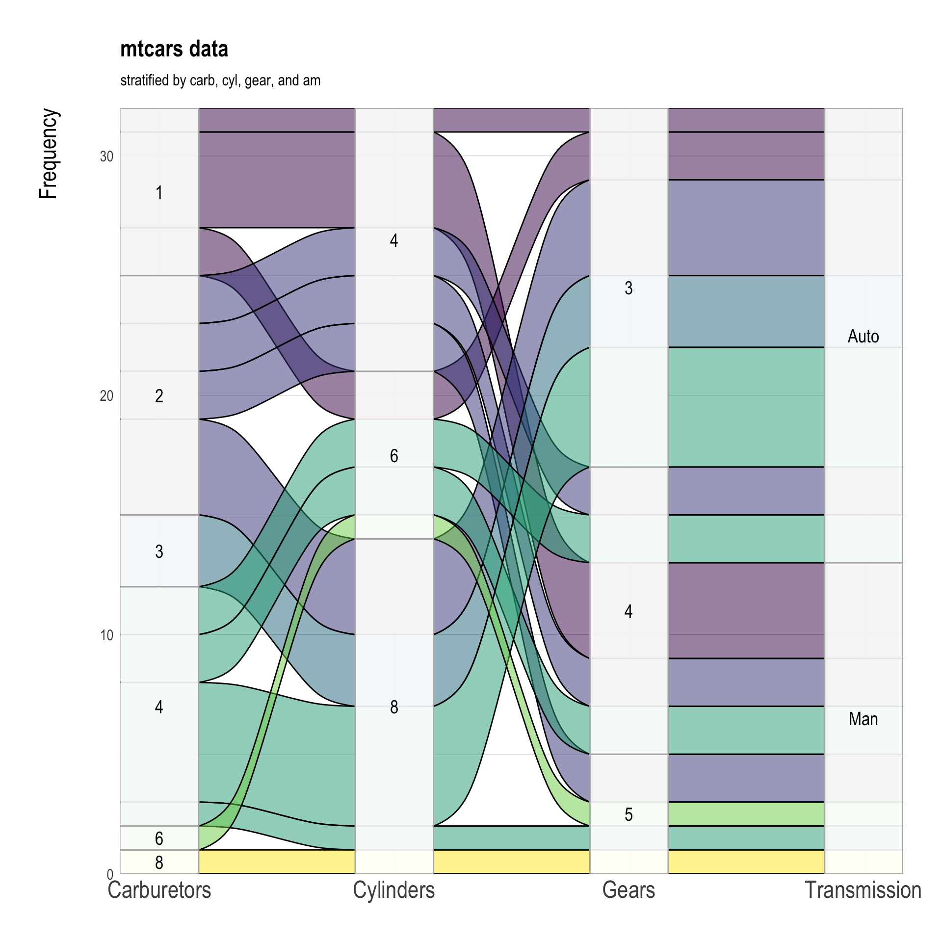 Use variables am, cyl, gear, and carb in the data.frame datasets::mtcars.