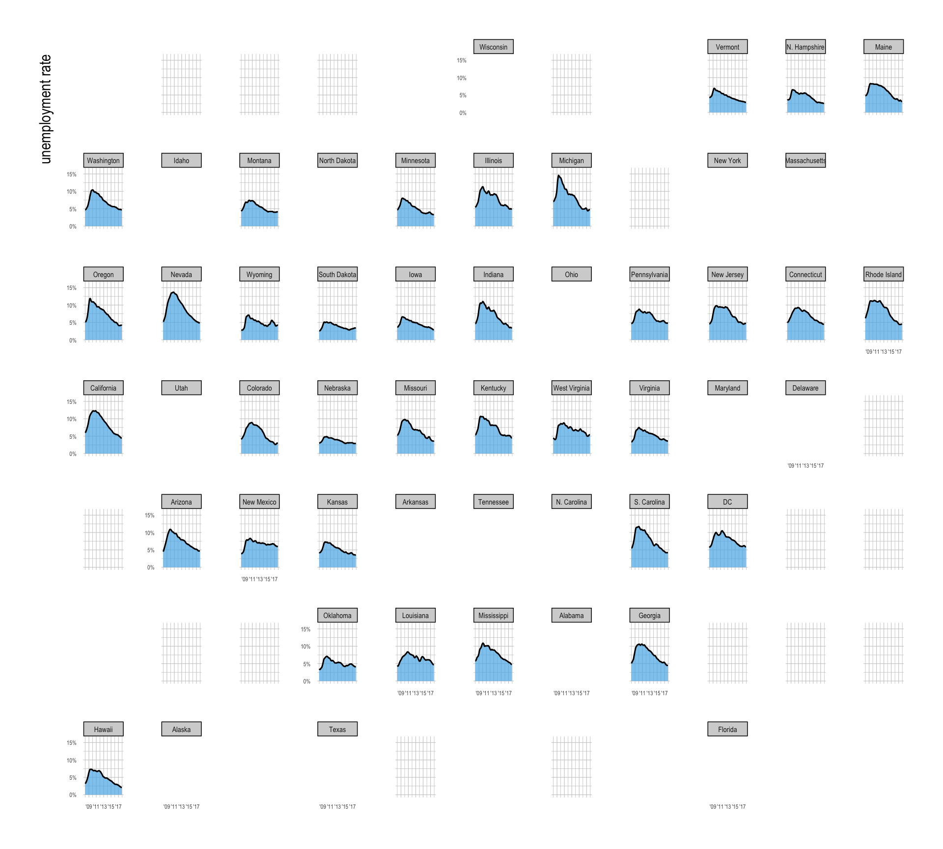 Part 3. Unemployment Rate Maps with geofacet::facet_geo()