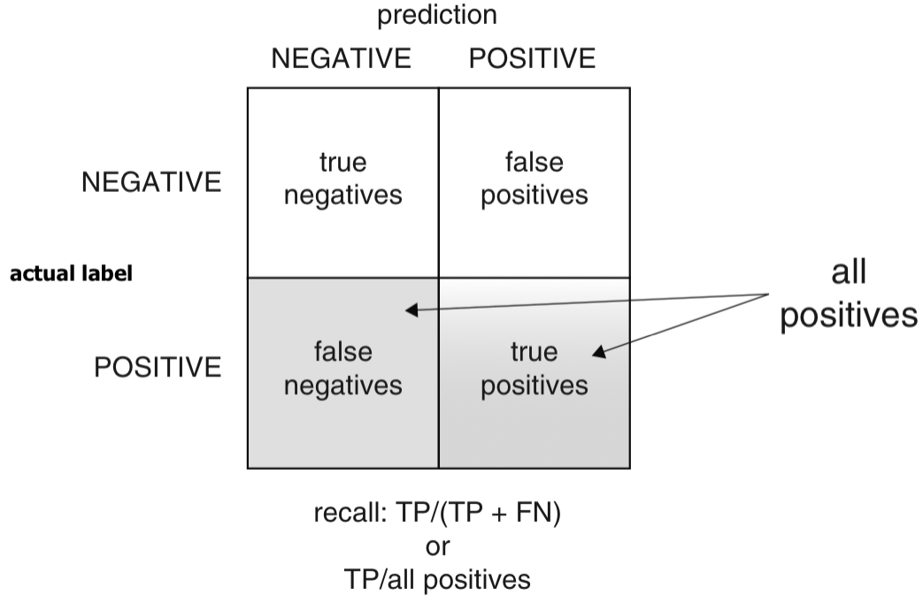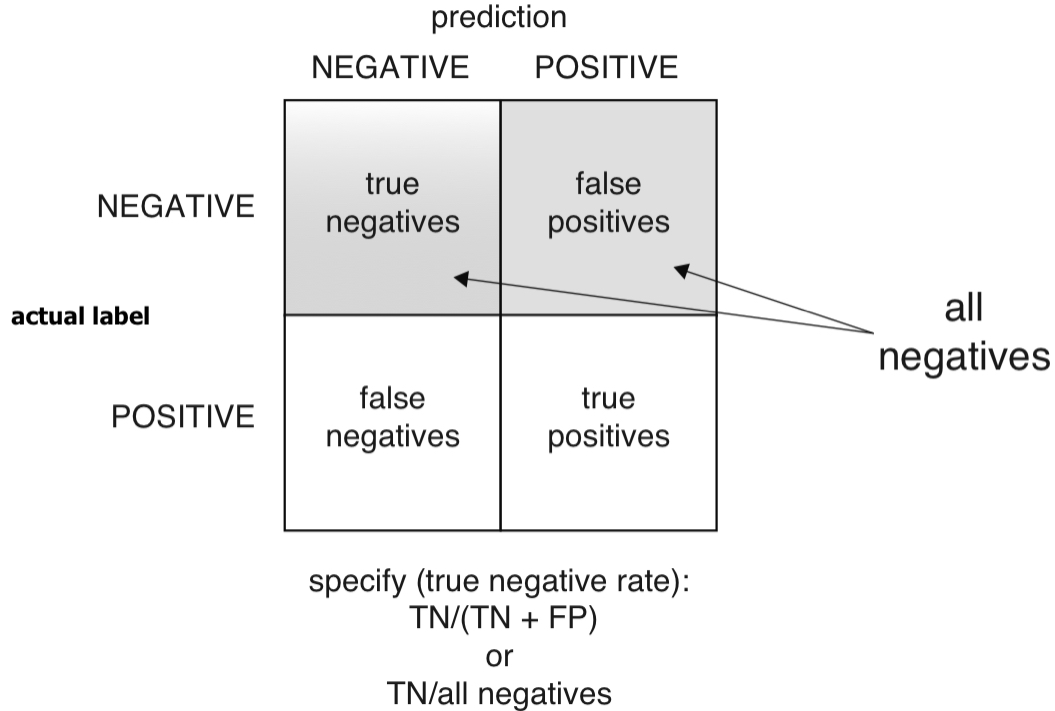 The receiver operating characteristic curve (or ROC curve) plots both the true positive rate (recall) and the false positive rate (or 1 - specificity) for all threshold levels.
