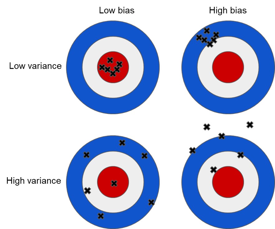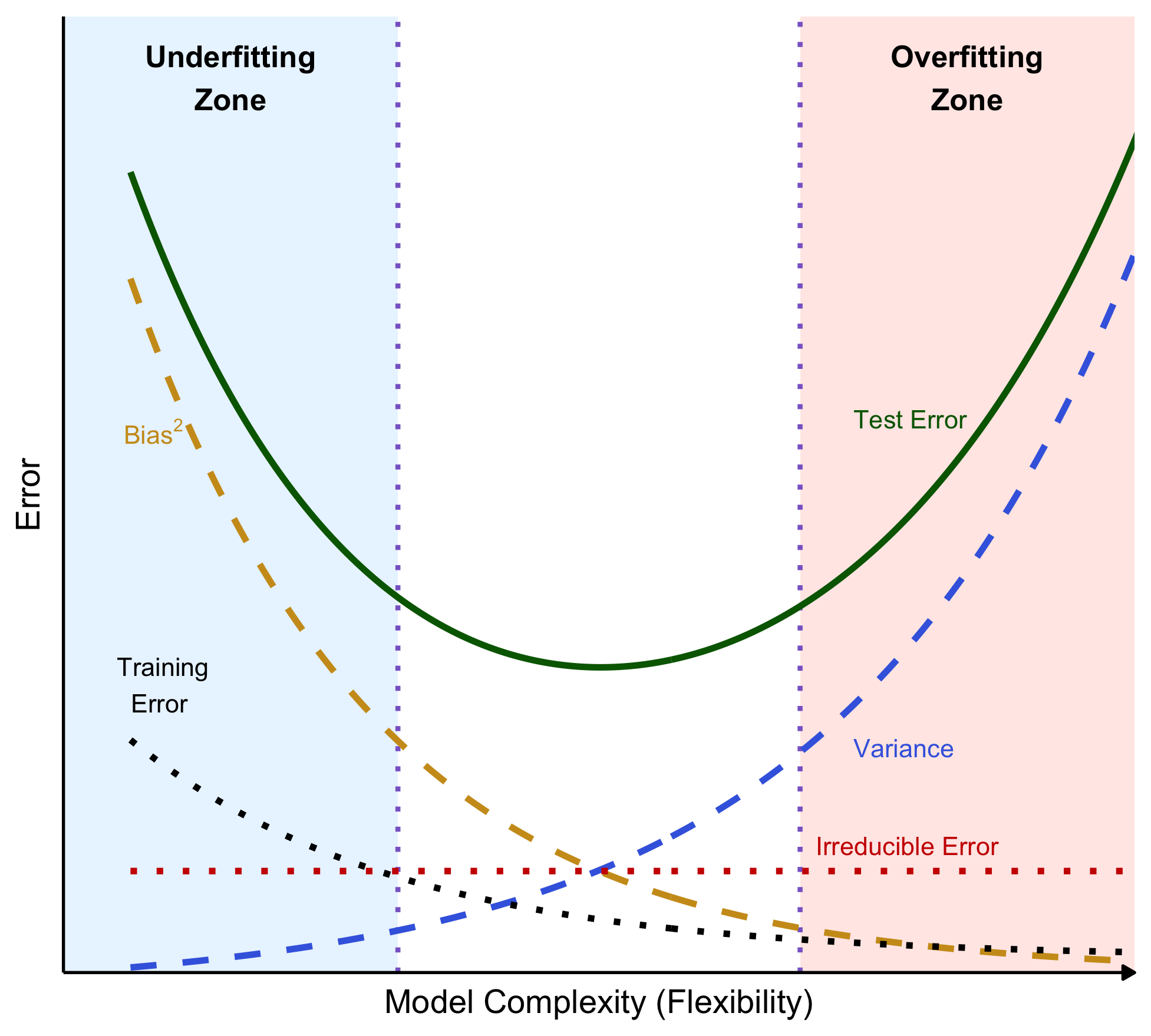 \[ \text{(Error)}^{2} = \text{(Bias)}^{2} + \text{(Variance)} + \text{(Irreducible Noise)} \]