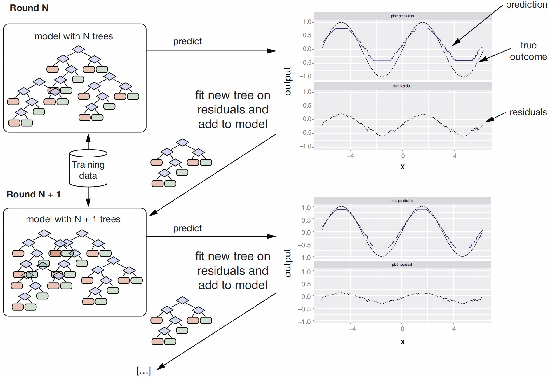 XGBoost is one of the most popular open-source library for the gradient boosting algorithm.nrounds)eta), i.e. how much we update in each stepnrounds and eta really have to be tuned togethermax_depth, min_child_weight)