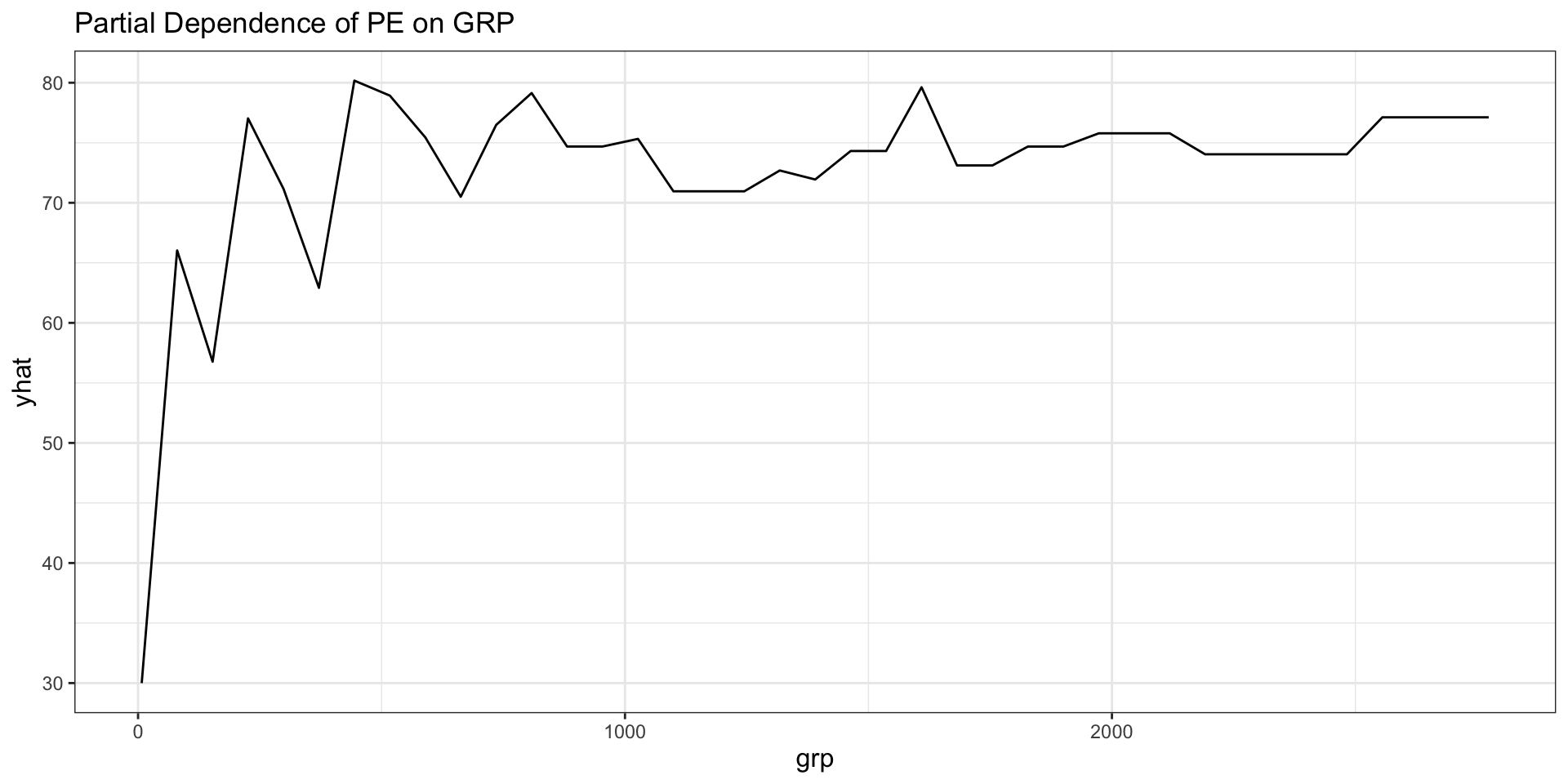 - The PDP helps us see the direction and shape of the model-implied relationship.