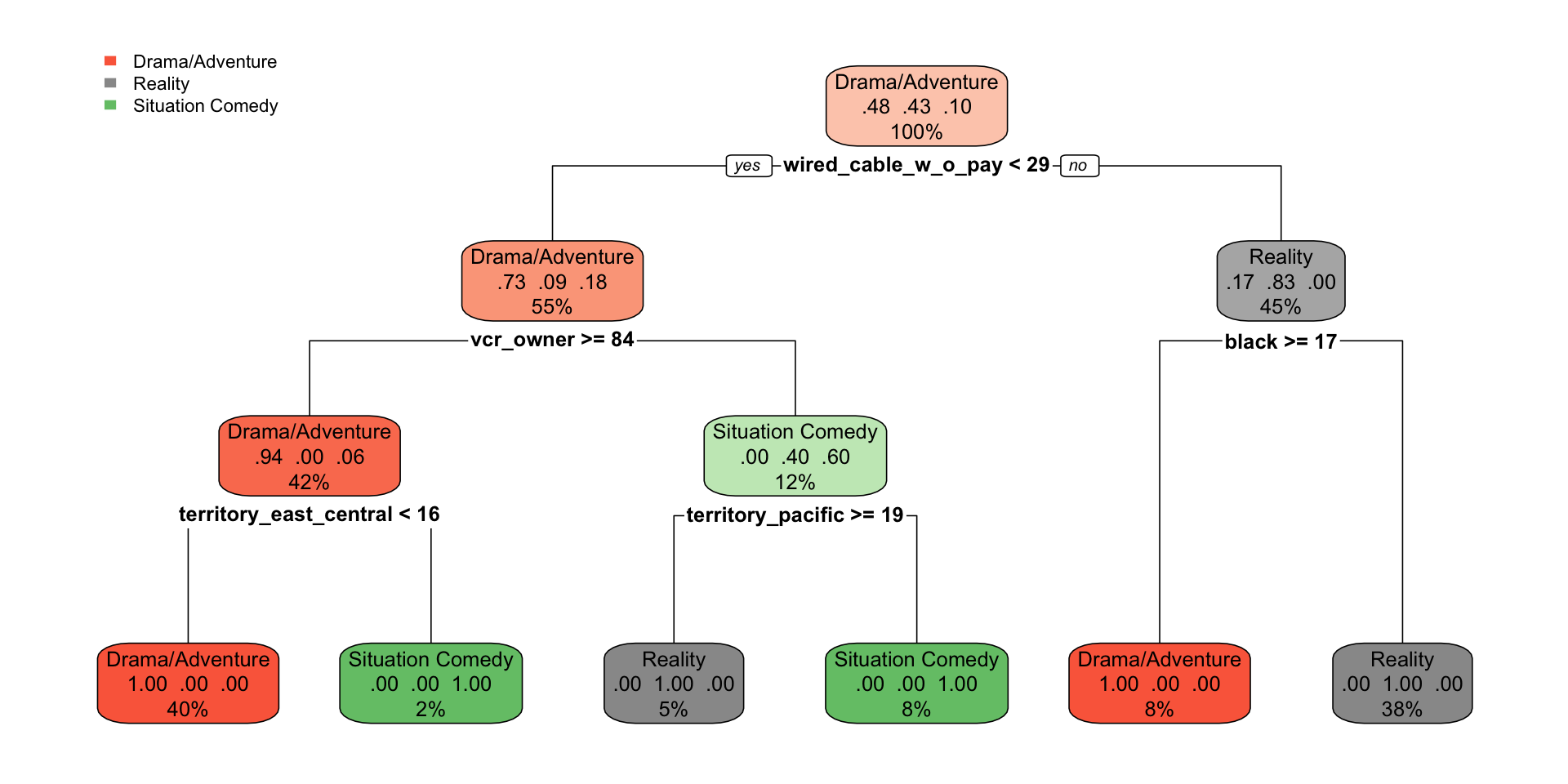 5) vcr_owner< 83.749 5 2 Situation Comedy (0.00000000 0.40000000 0.60000000)
