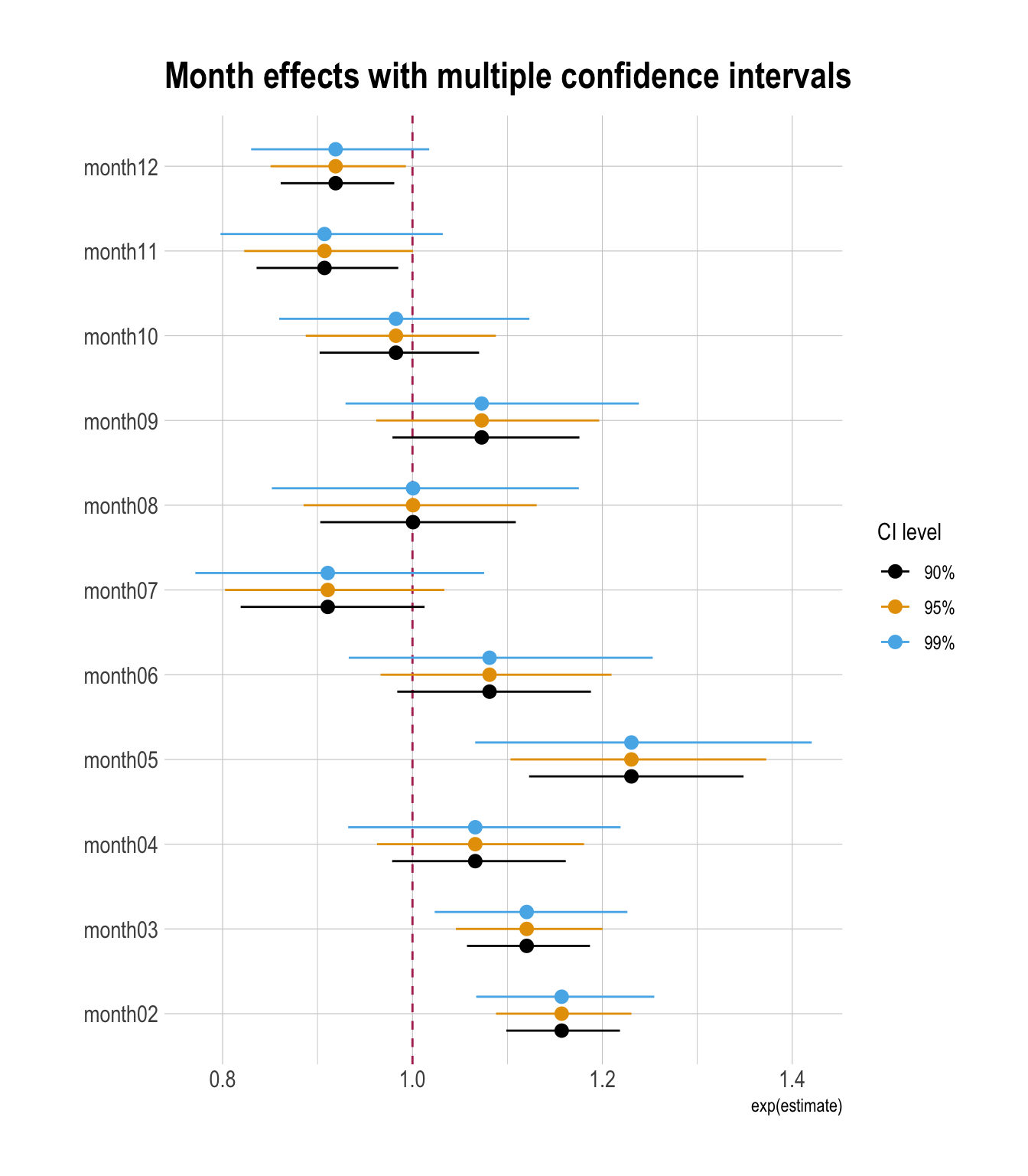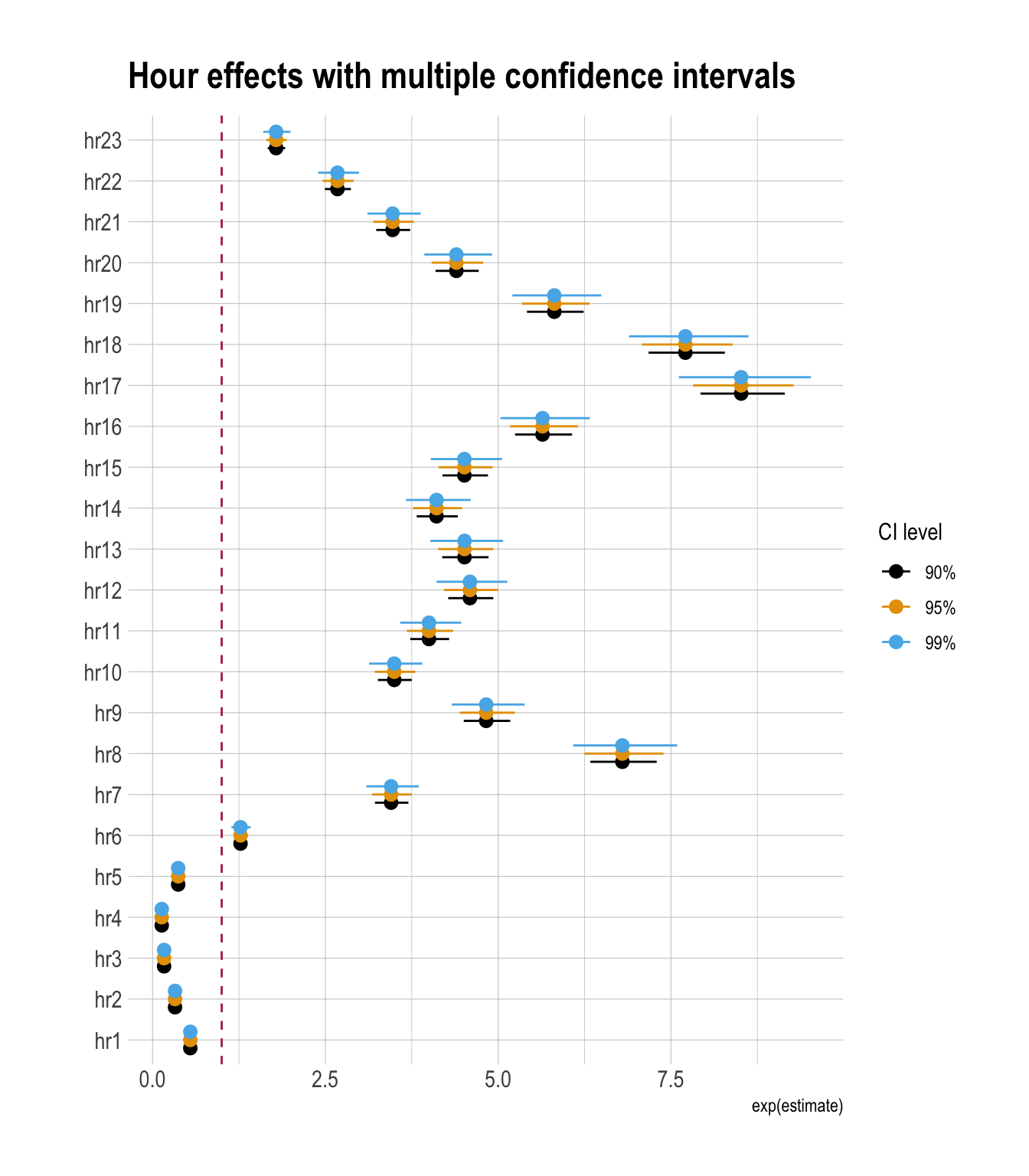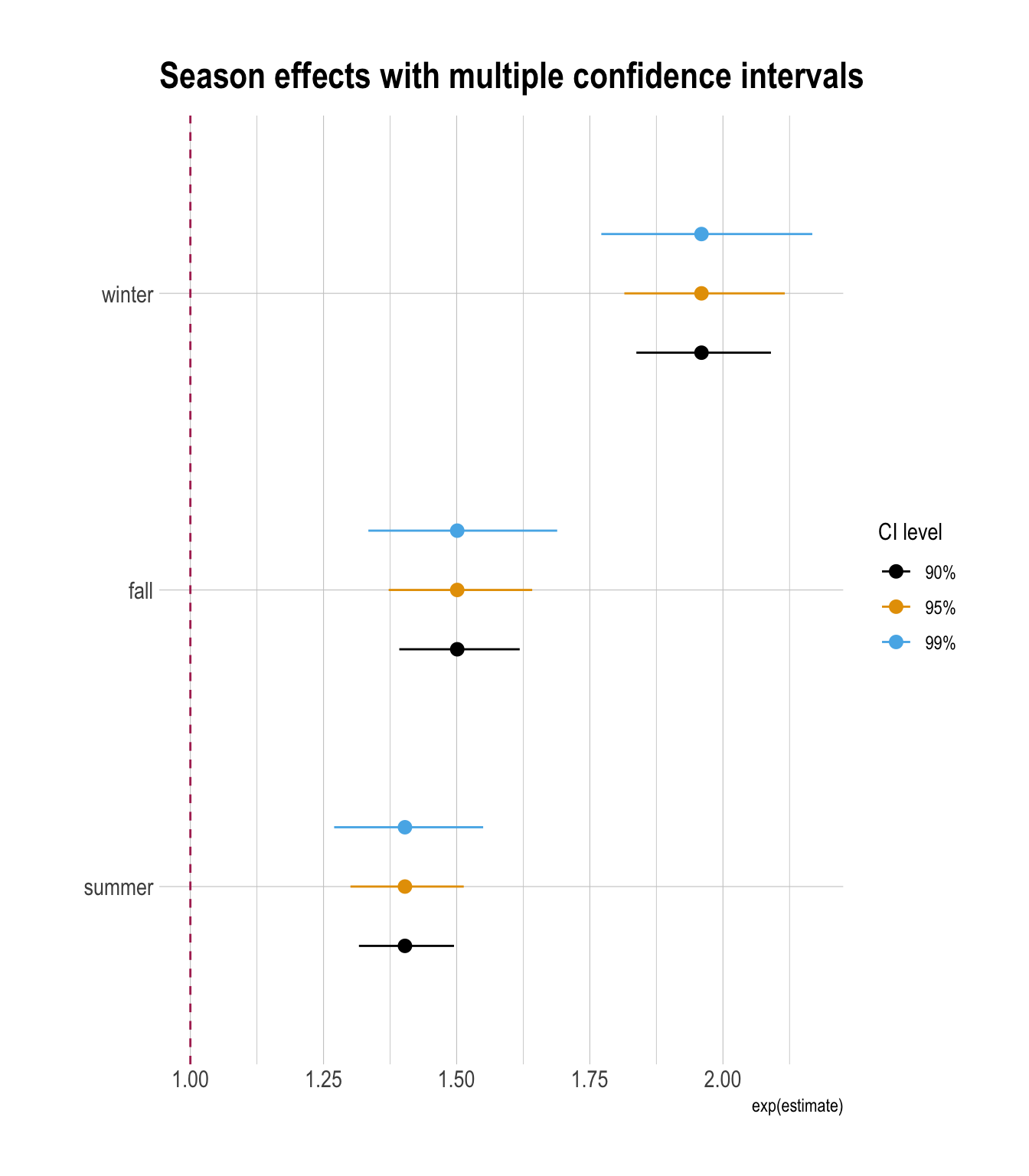 geom_vline(xintercept = 1, color = "maroon", linetype = 2) +