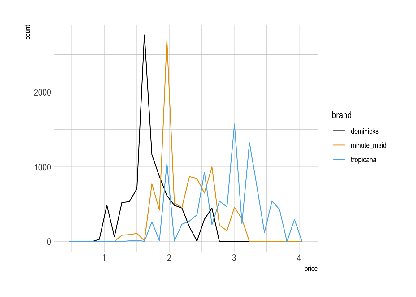ggplot(aes(x = price, color = brand)) +