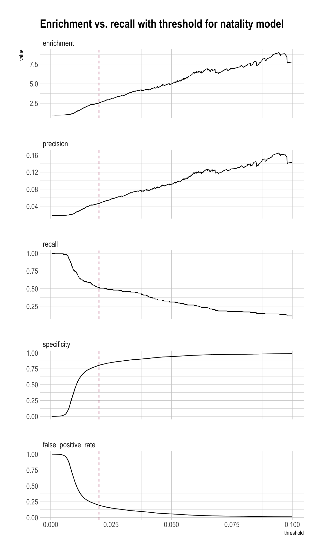 pivot_longer(cols = c(precision, recall, specificity, enrichment),