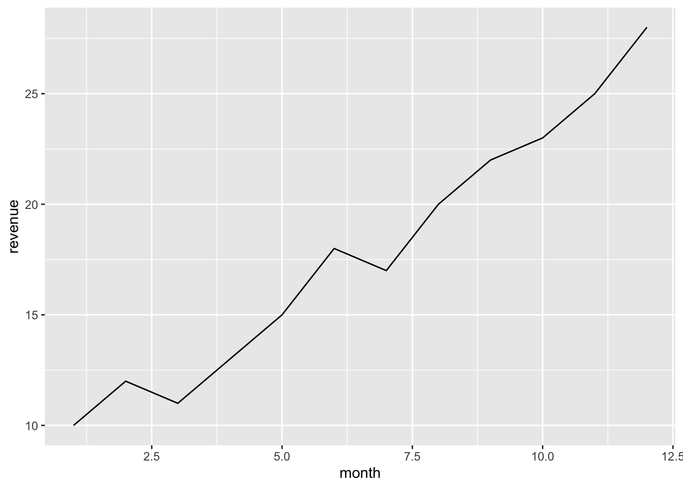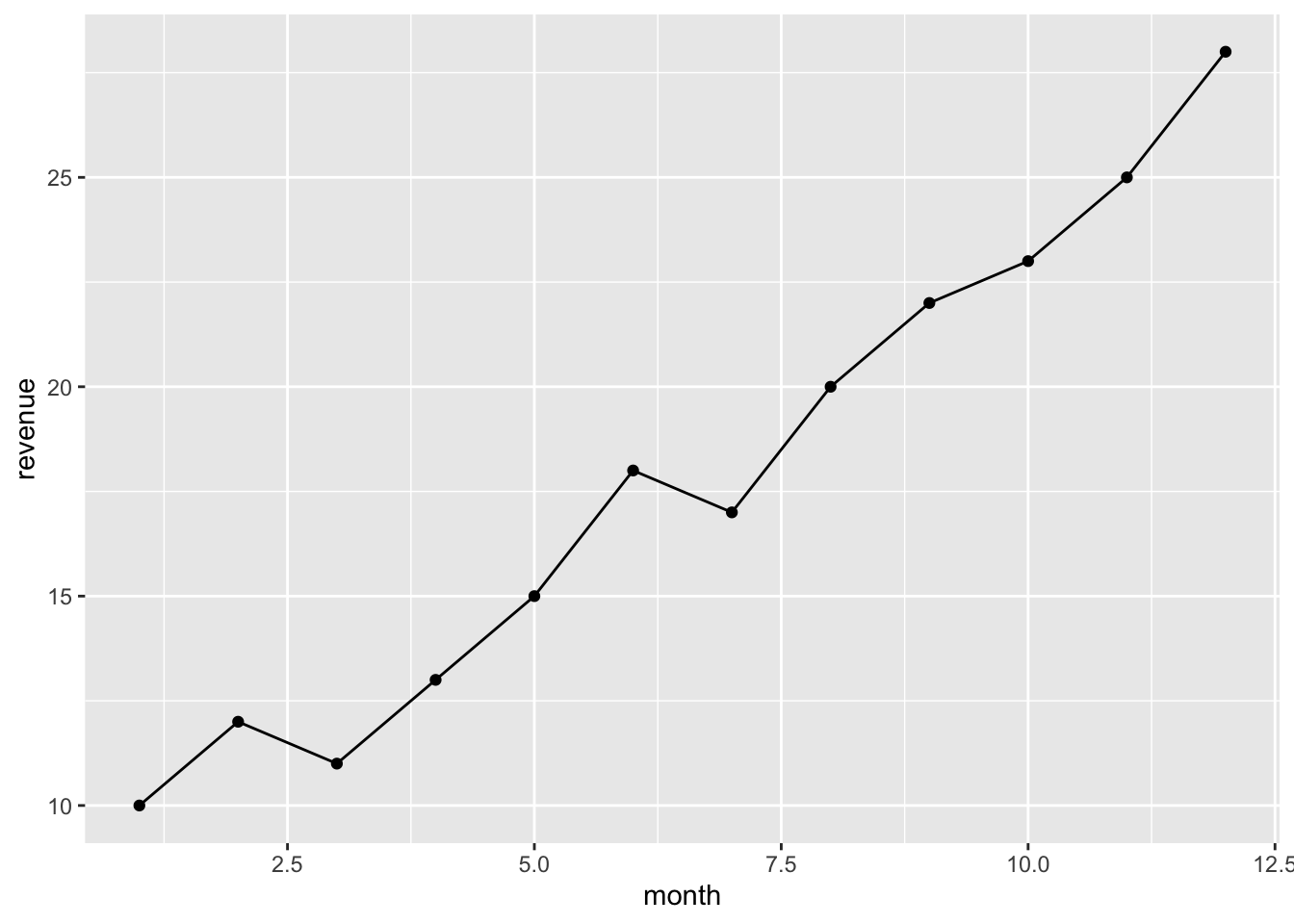 revenue = c(10, 12, 11, 13, 15, 18, 17, 20, 22, 23, 25, 28)